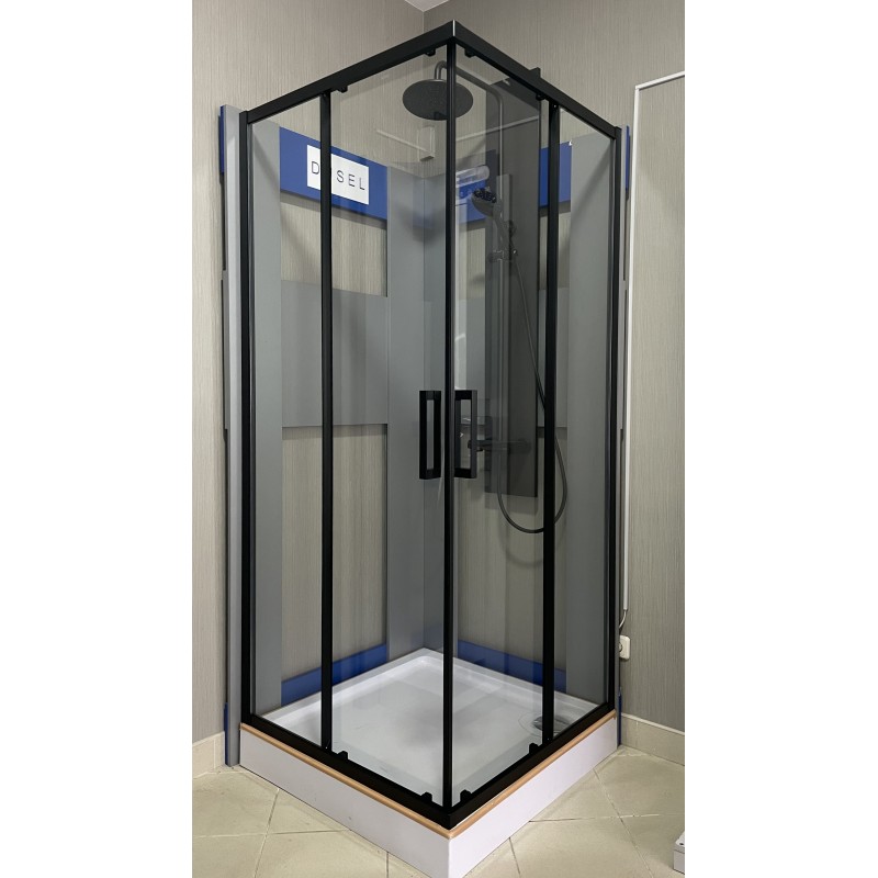 Душова кабіна Dusel А-513HB Black Matt, 90х90х195, двері розсувні, скло прозоре