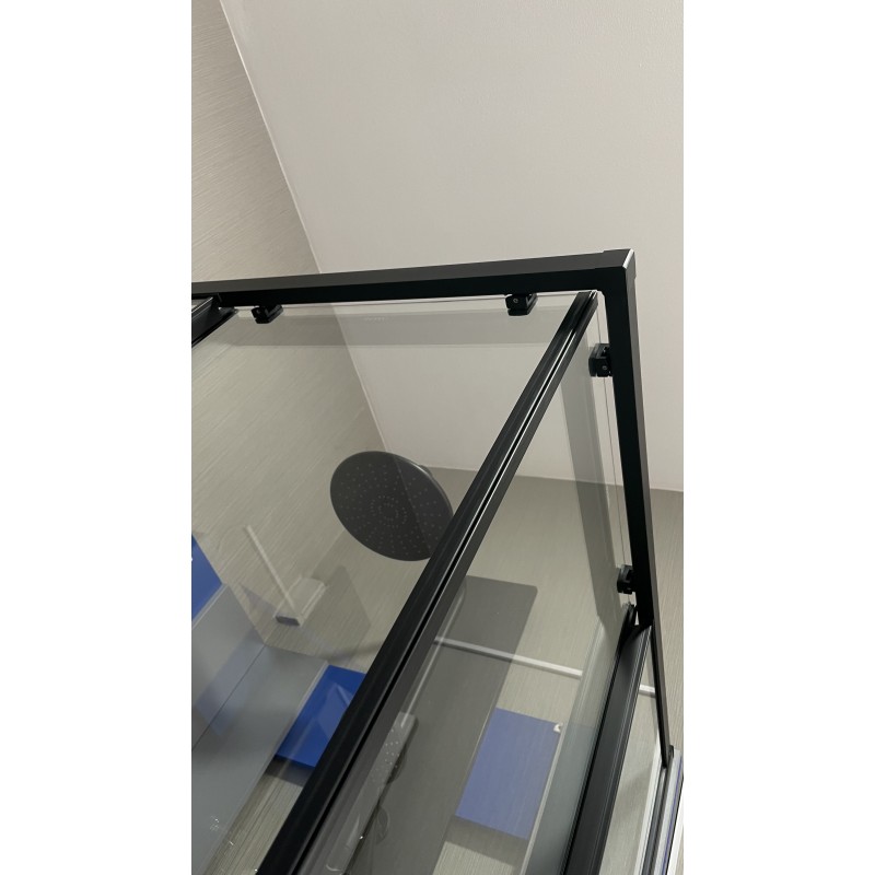 Душова кабіна Dusel A-513HB Black Matt квадратної форми оснащена двома розсувними дверима на металевих роликах, що забезпечують плавне та безшумне відкривання.